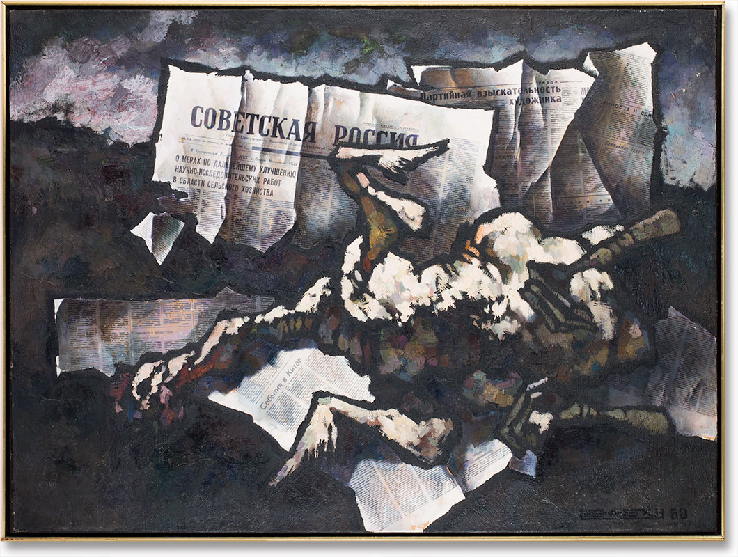 These paintings were executed during the regime of Leonid Breshnev, the latter years of which have been described as a period of stagnation and economic decline of the Soviet totalitarian system. The very fact these paintings were produced at all is testimony to the artists' determination not to be silenced by a repressive and tyrannical government. When seeking an understanding of the defeat of the Soviet Union in the Cold War, as well as an insight on present-day Russian society, it is helpful to examine the history of the dissident movement in the Soviet Union as expressed in art and literature.